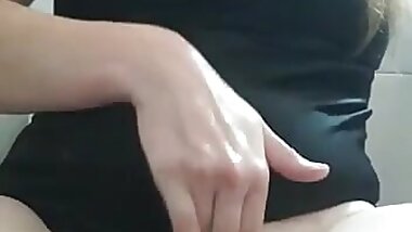 "Hot latina masturbates in the bathroom"