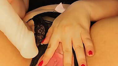 "a sexy young girl named DANNA CCONNOR masturbates with a big cock and it hurts because she is tight and little .. pussy"